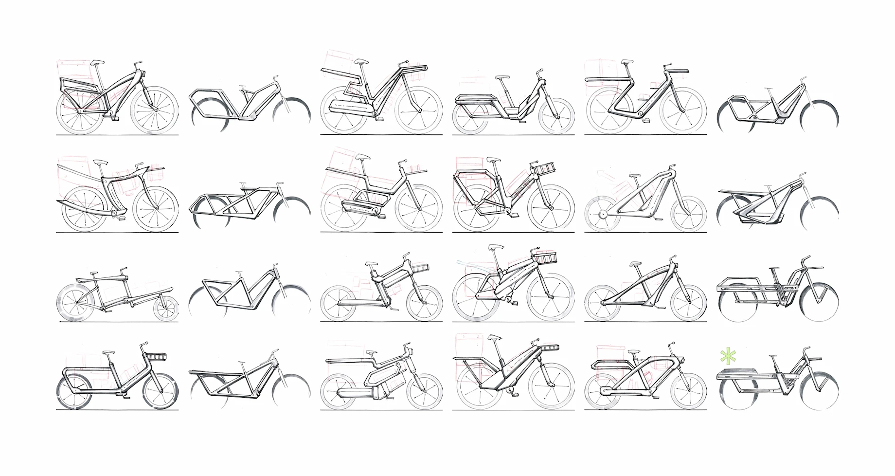 Three pilot concepts were created in response to our insights. We combined the MaxHaul and the Cyberbike and set down the basis of a rear load setup with extended wheelbase. Rounds of benchmarking and fit bike testing provided us a unique geometry, balancing agility, stability, and potential for load capacity.